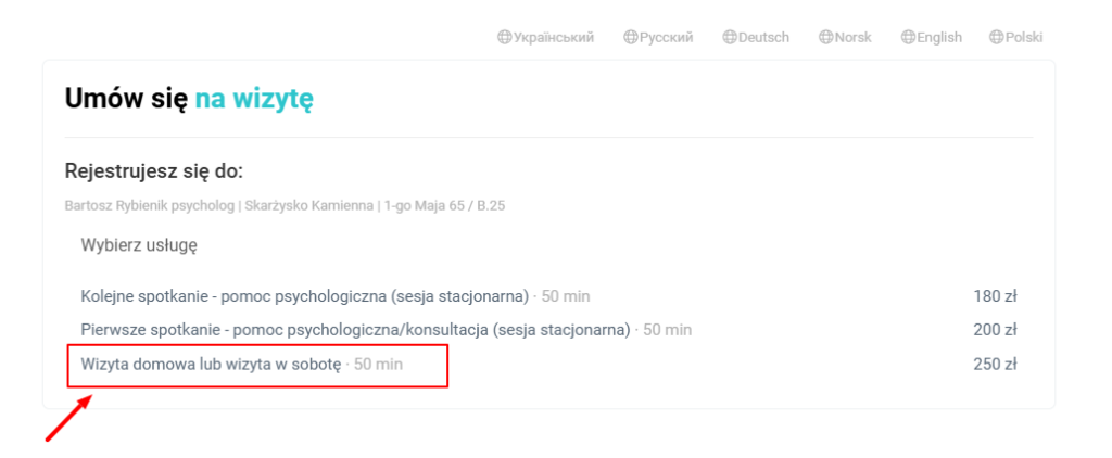 Aby umówić wizytę kliknij na stronę rezerwacji i zaznacz odpowiednią opcję: