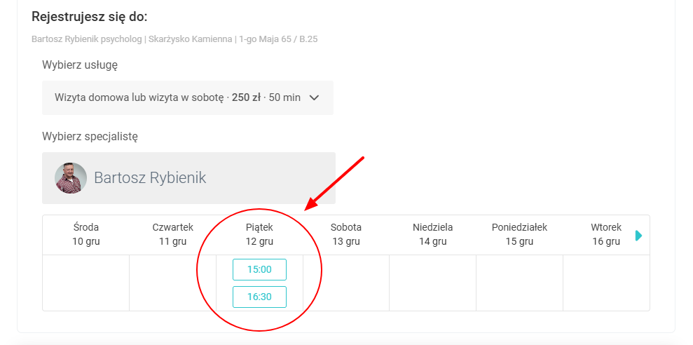 Następnie wybierz odpowiadający Ci termin (kliknij teraz):